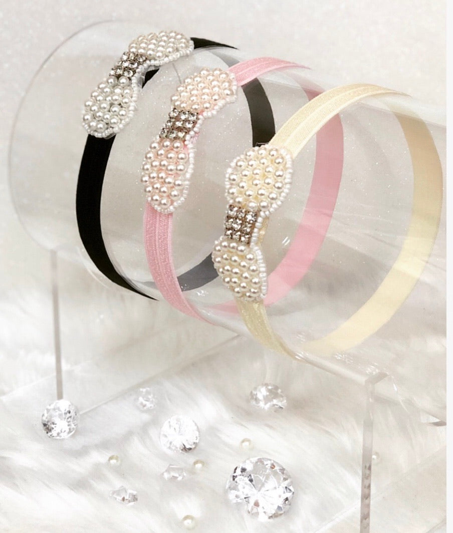Stretchy (0-6 months) headband with pearl/rhinestone accents