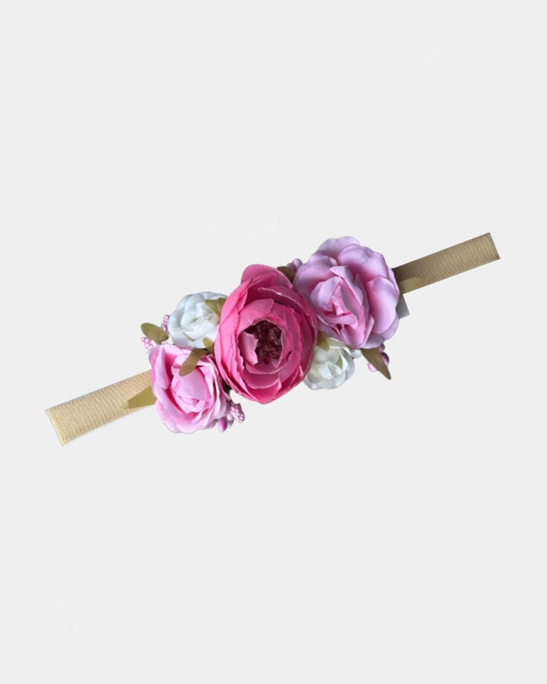 Beige Nylon headband with floral top accents