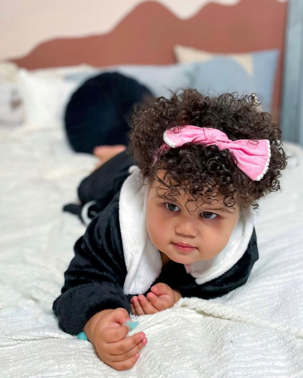 A cotton headband with faux knot detail and fringe accent