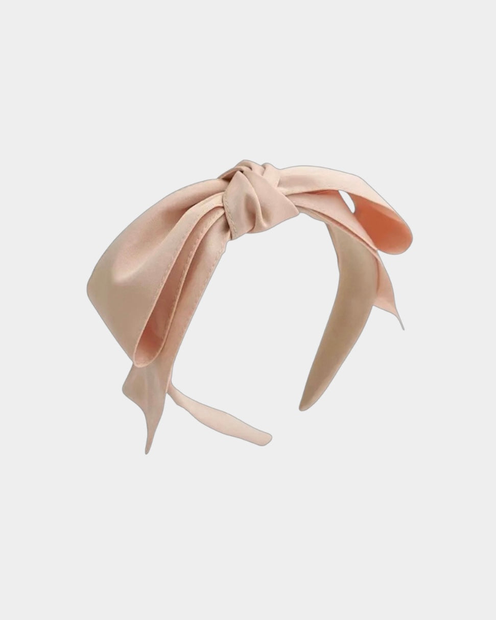 Satin mix headband with double folded center bow accent