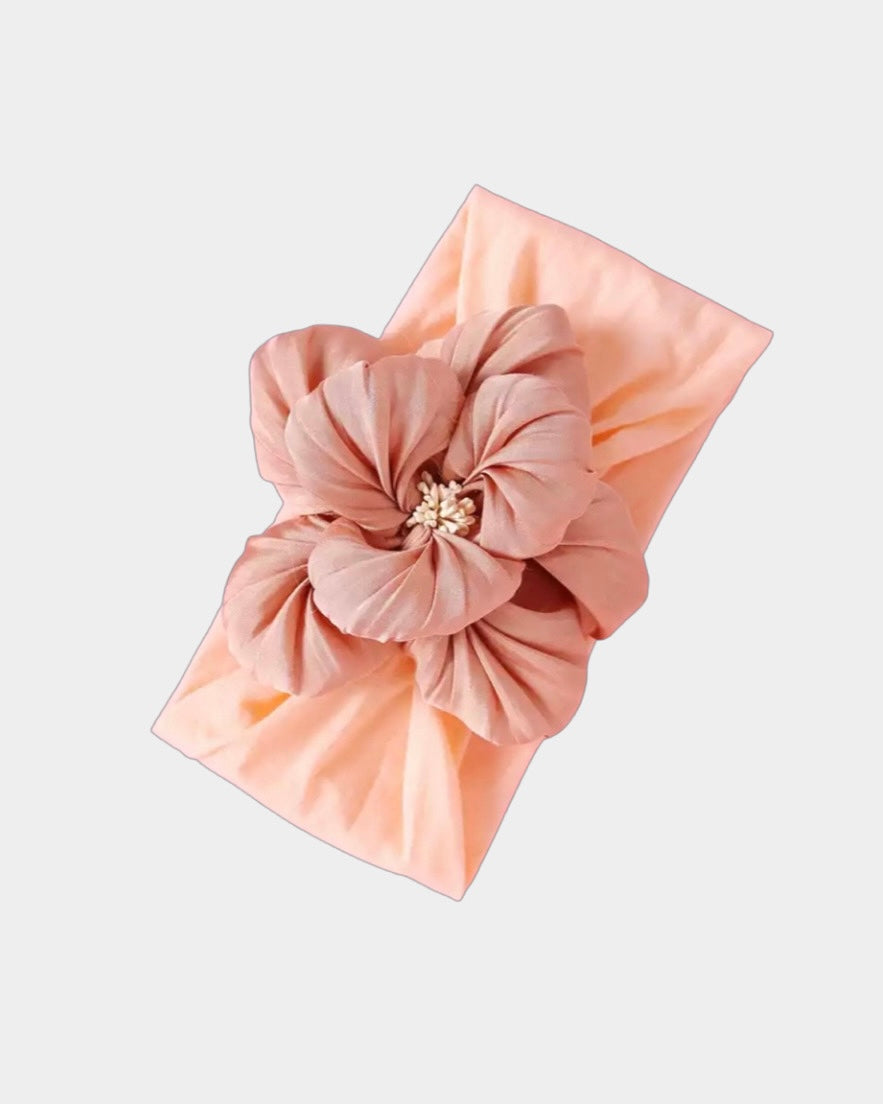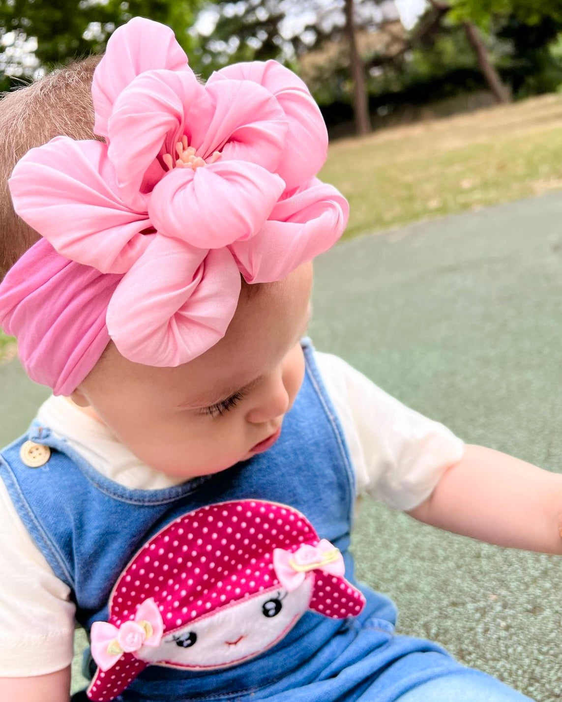 Stretchy nylon headband with a puffy floral chiffon decorative topper