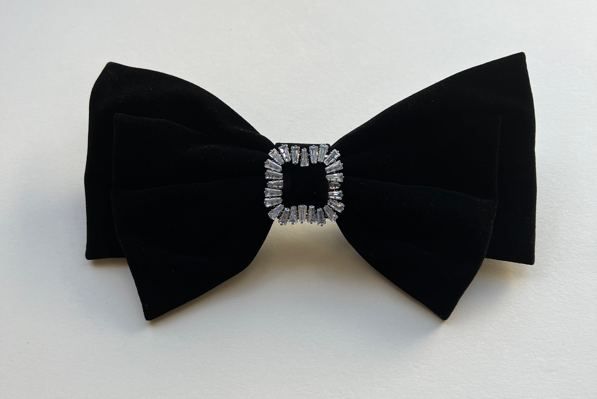 6.5 inch double layered velvet bow with square center rhinestone accent